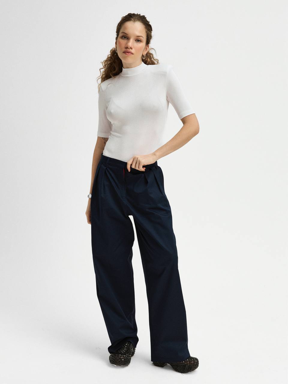 • брюки на завышенной талии;