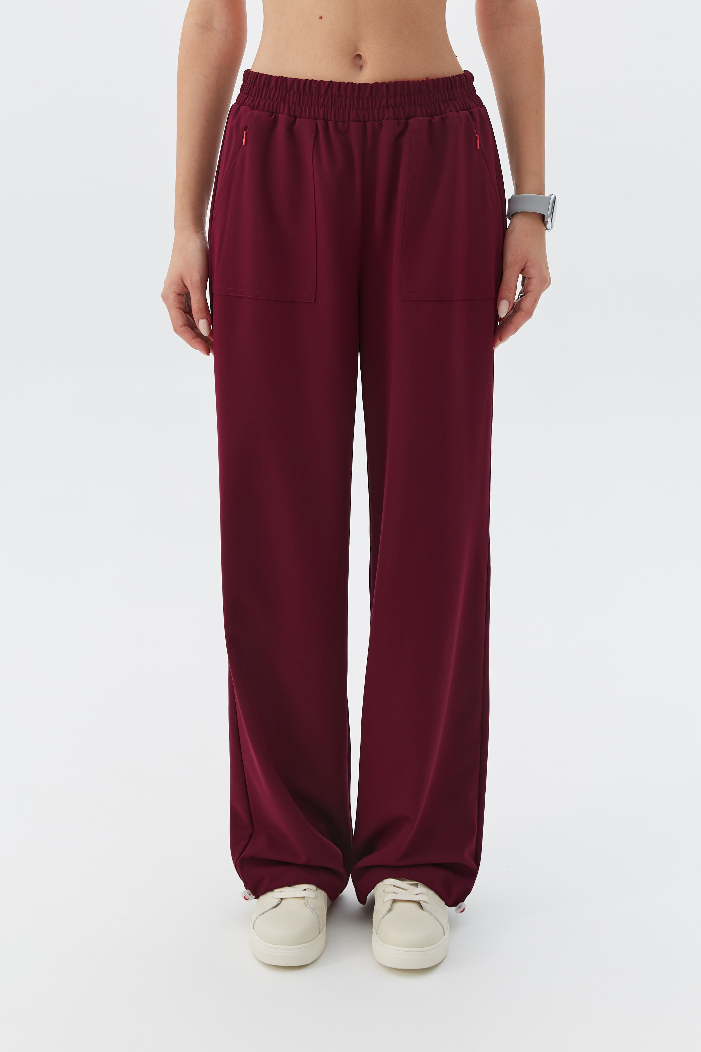 • внизу расположены кулиски, которые регулируют длину брюк и их фасон;