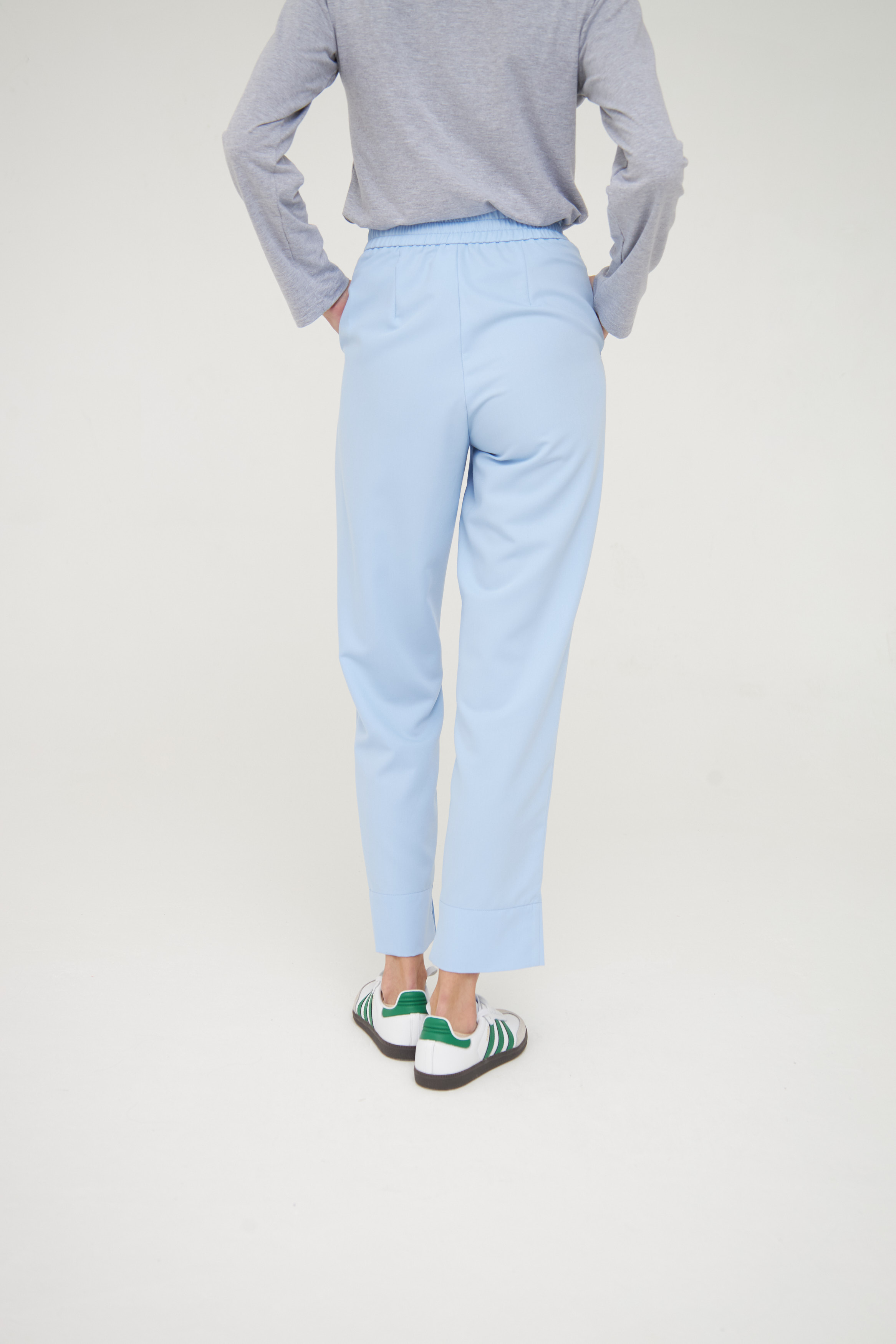 Модель на высокой талии, длиной до щиколотки. Комфортная посадка обеспечивается за счет резинки на талии, которая располагается только на спинке, не разбивая деловой вид.