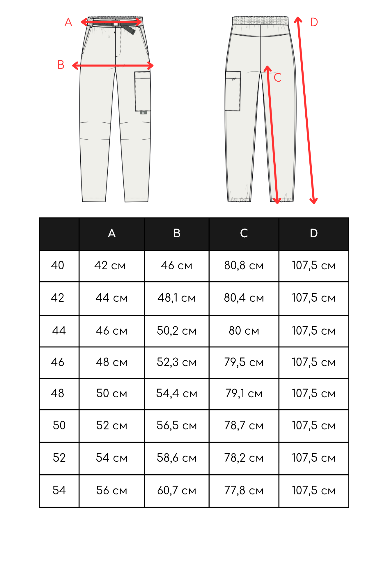 Таблица размеров