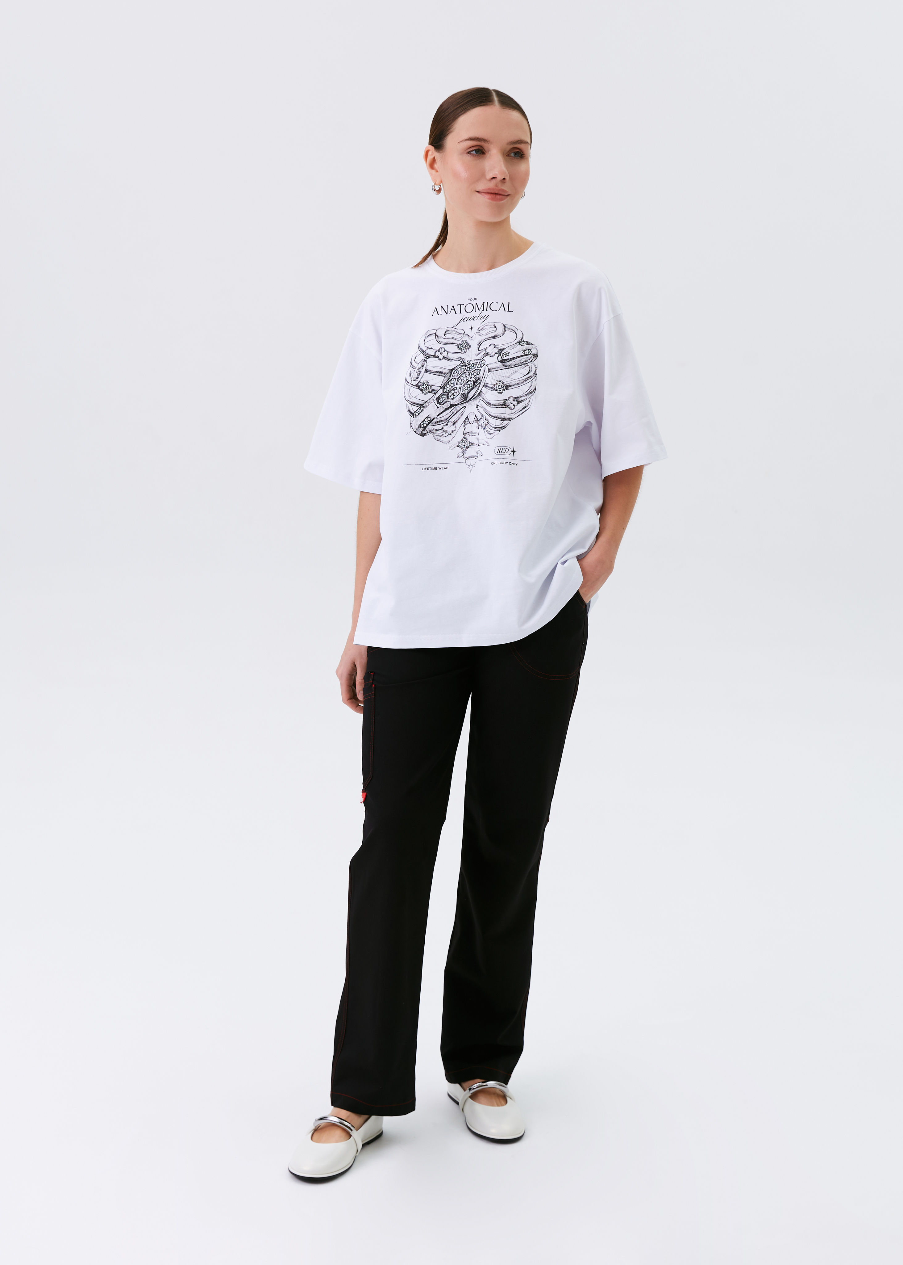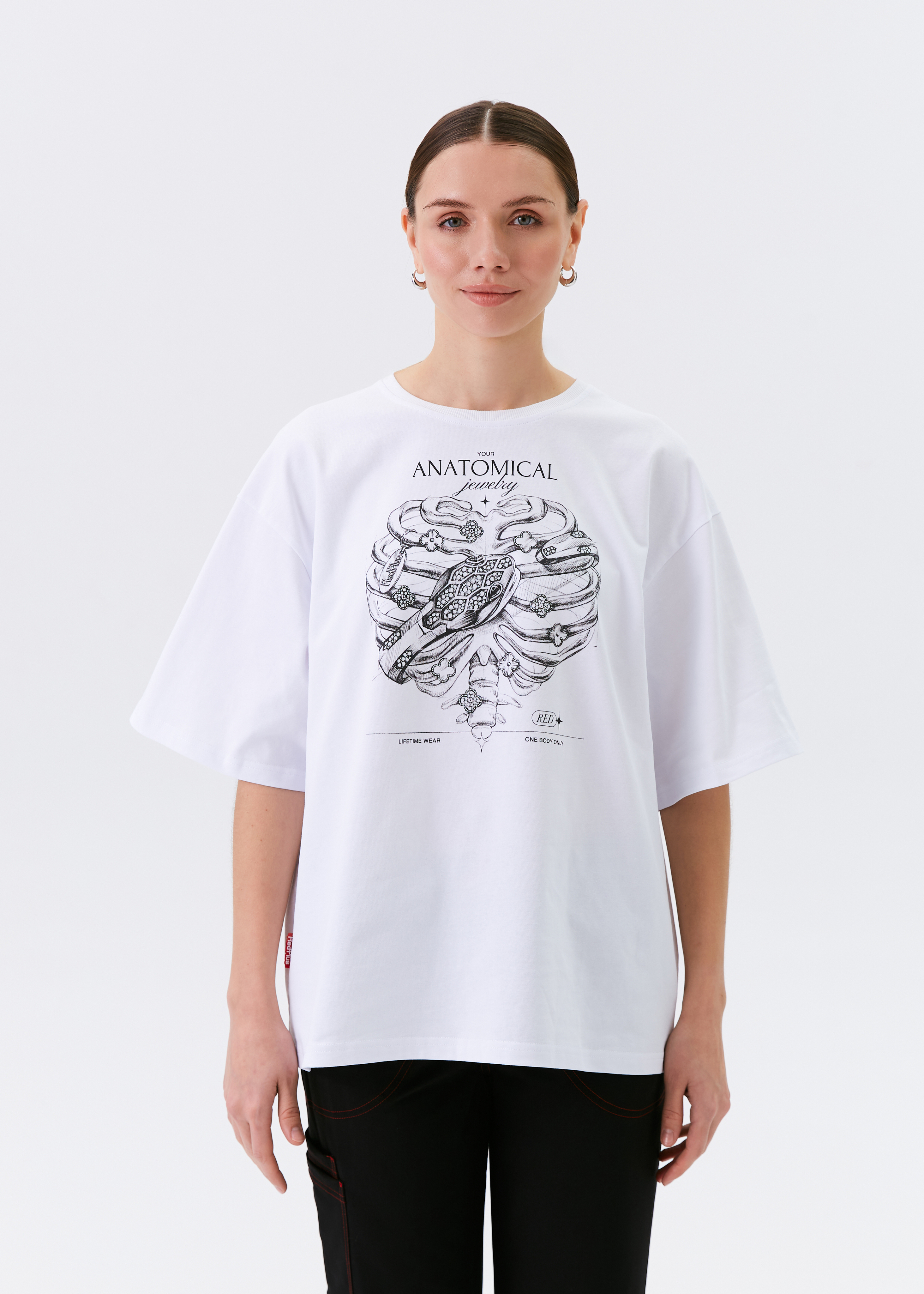 Новая оверсайз-футболка «Jewelry» белого цвета из 100%-го хлопка – идеальный выбор для медицинских работников! Удобна, комфортна благодаря свободному крою и натуральным материалам.