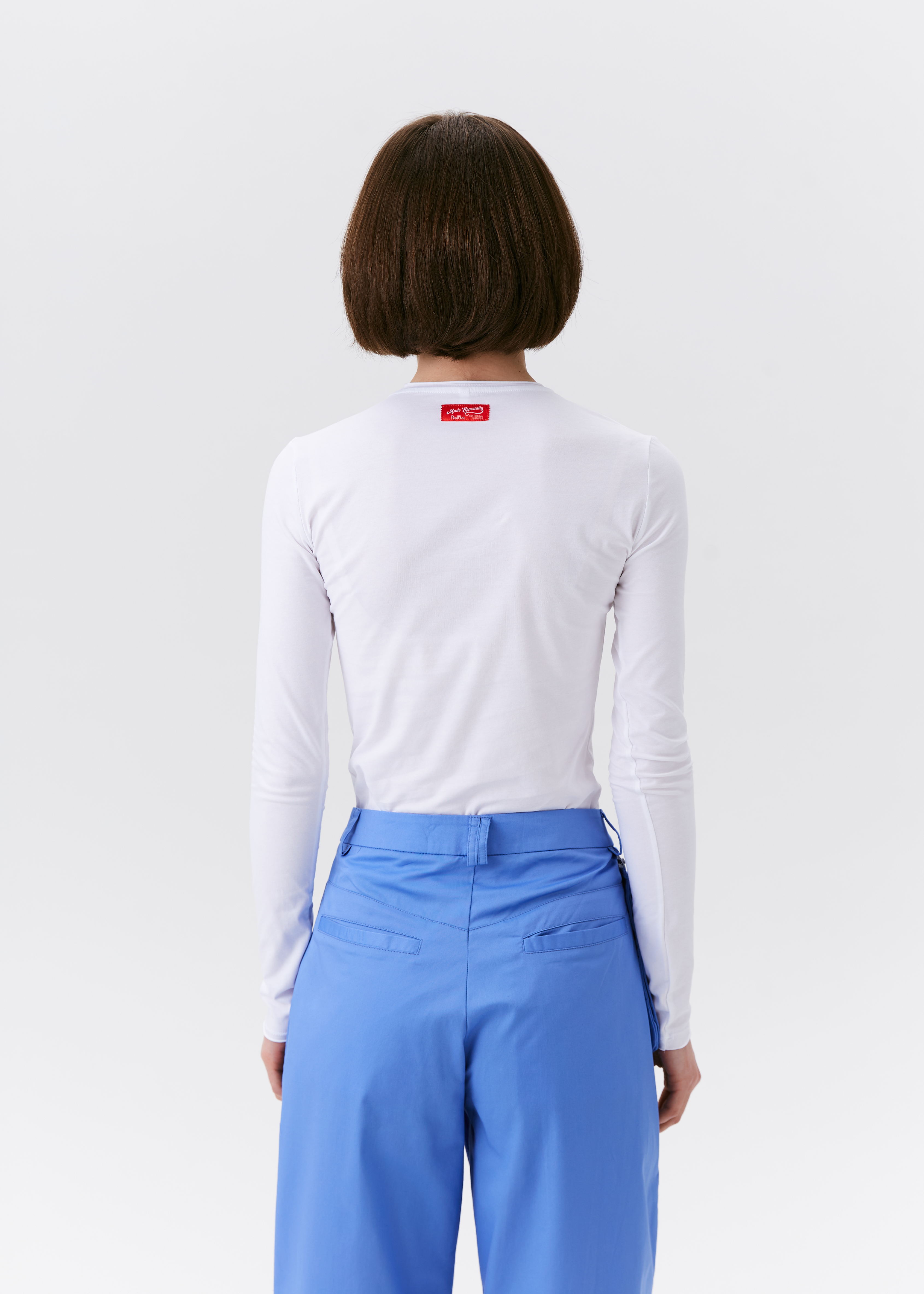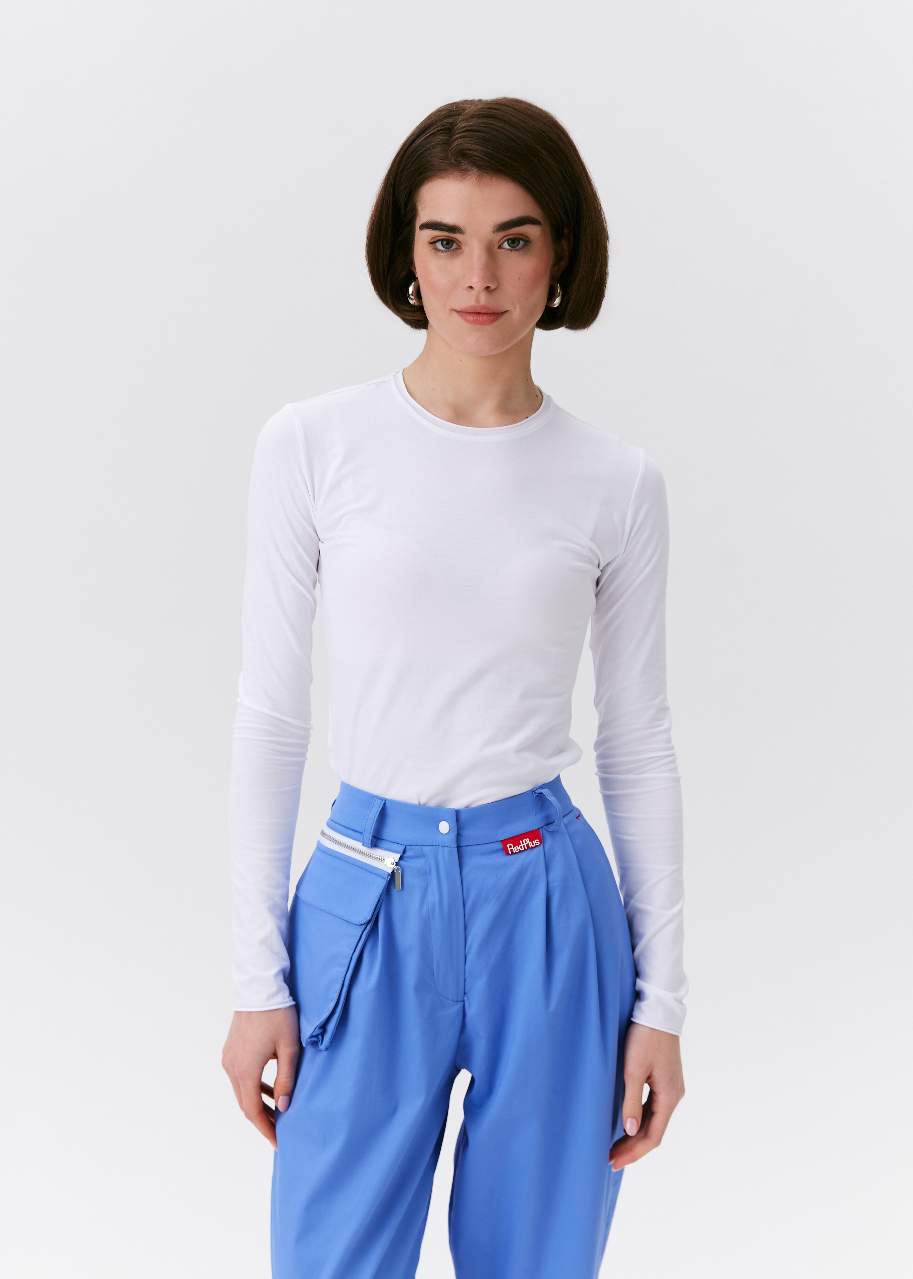 Этот лонгслив — основа идеального гардероба, где стираются границы между работой и жизнью. Сшитый из мягкого, дышащего хлопка, он создаёт тот самый желанный комфорт даже во время самых длинных смен.