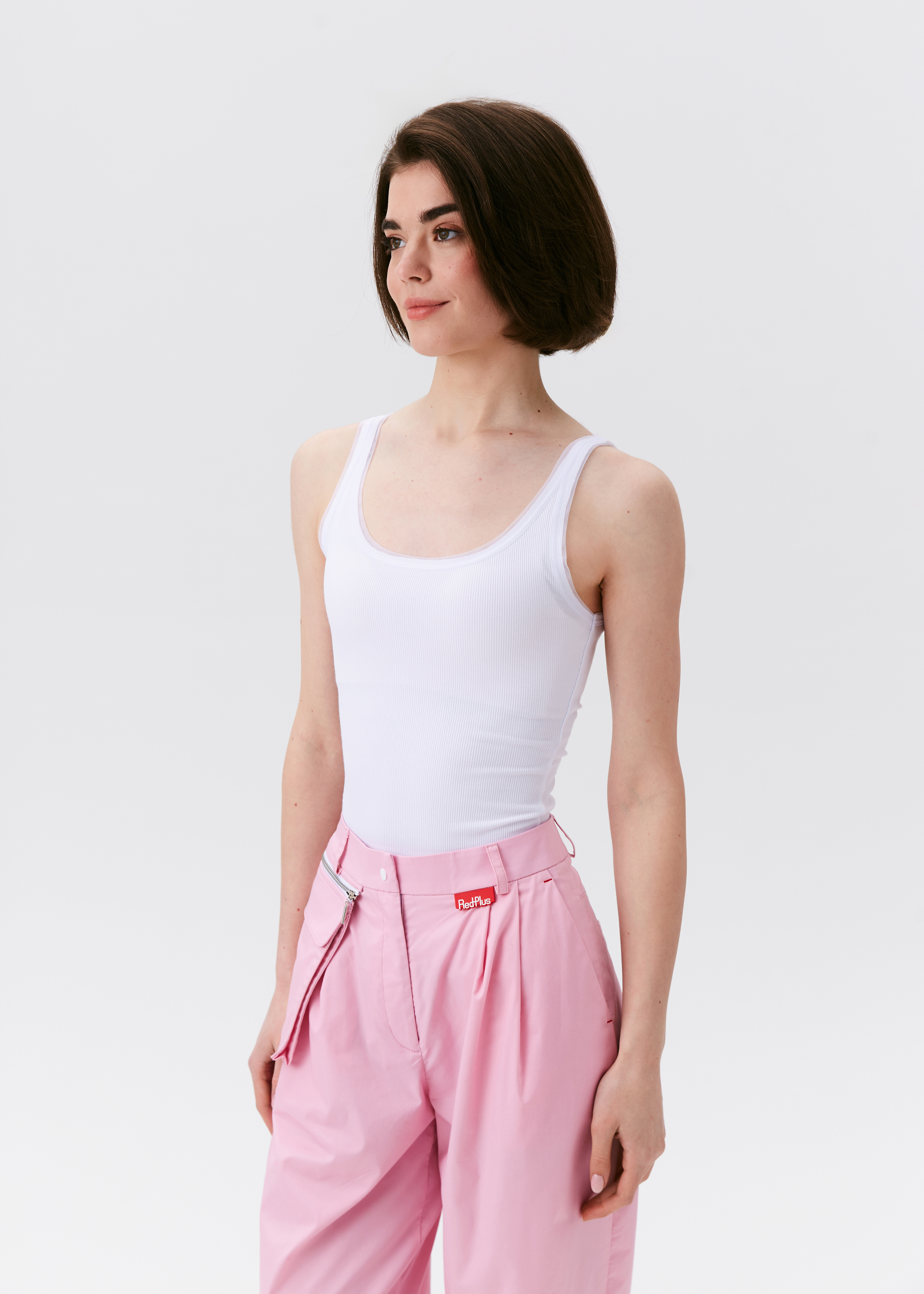 Майка - самый легкий способ добавить интересную деталь к образу, делая его комфортнее. По краям - декоративная отстрочка, благодаря которой майка будет изящно сочетаться с другим нашими топами и согревать!