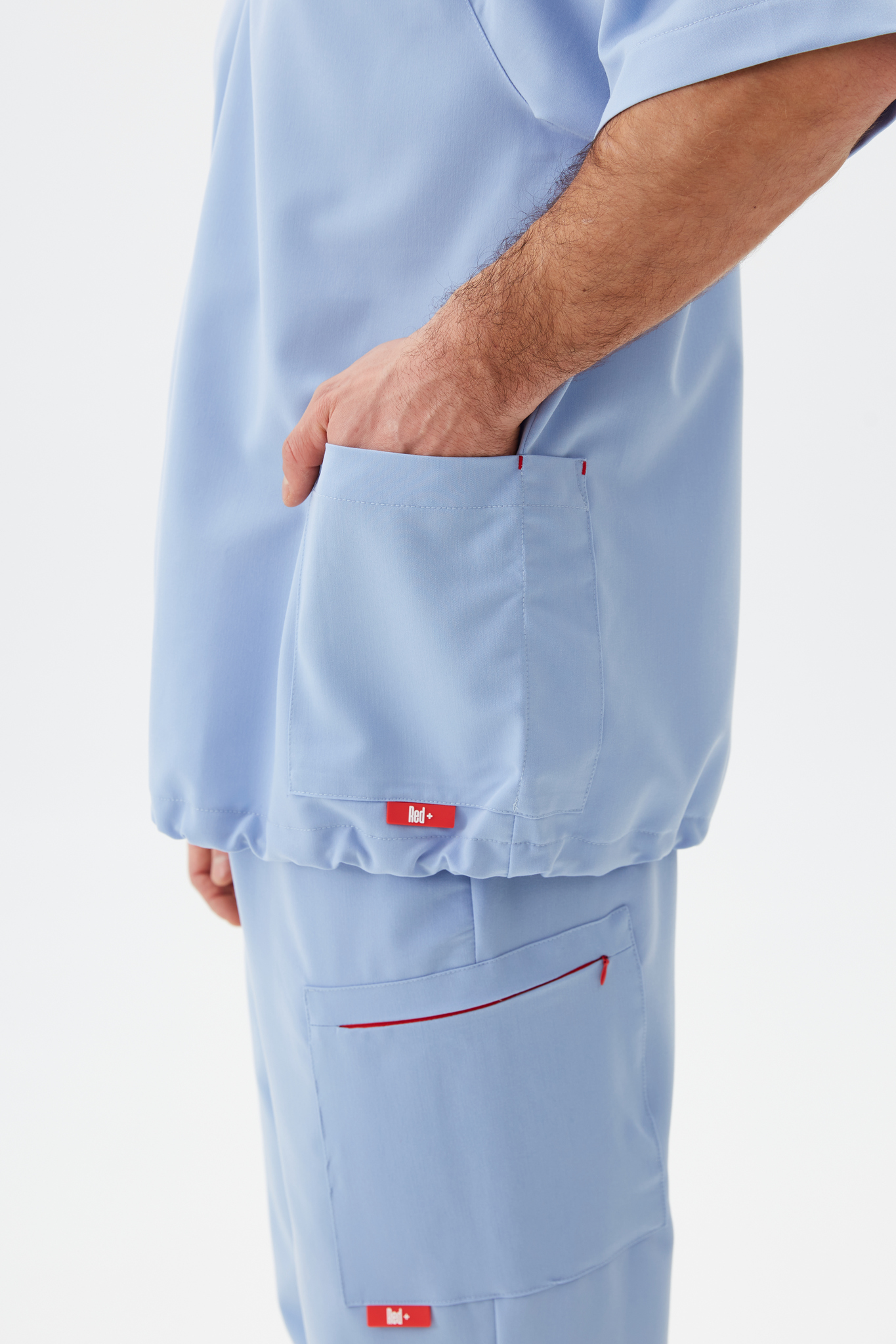 По бокам расположены вместительные накладные карманы, а внутри топа есть резинка с фиксаторами чтобы затянуть топ и изменить посадку