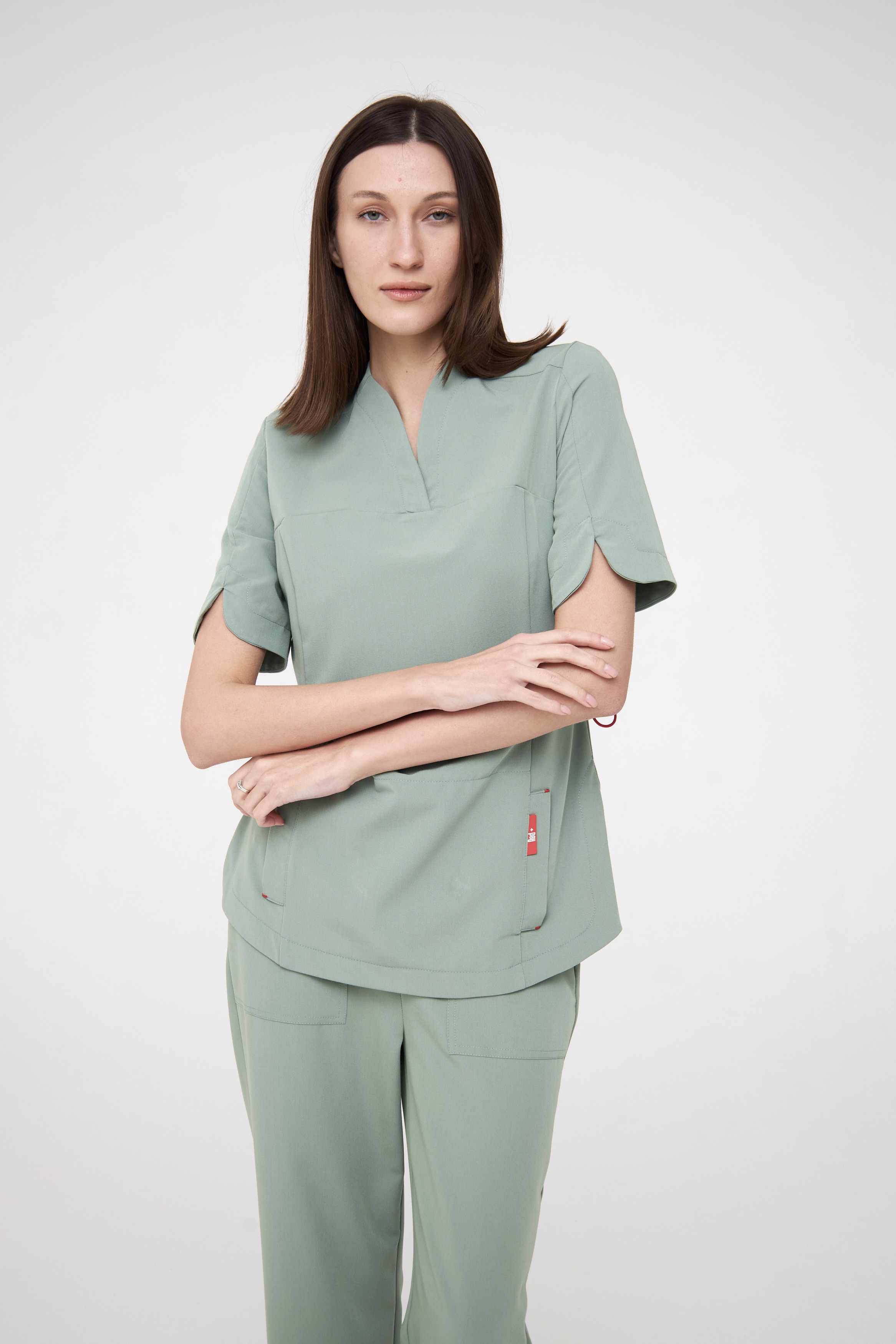 Рукава как лепестки цветов. Благодаря закруглённым линиям силуэту придаётся больше мягкости. Это новое современное прочтение женственности в медицинской форме. Удобная длина, комфортный вырез, линии горловины подчеркнут шею.
