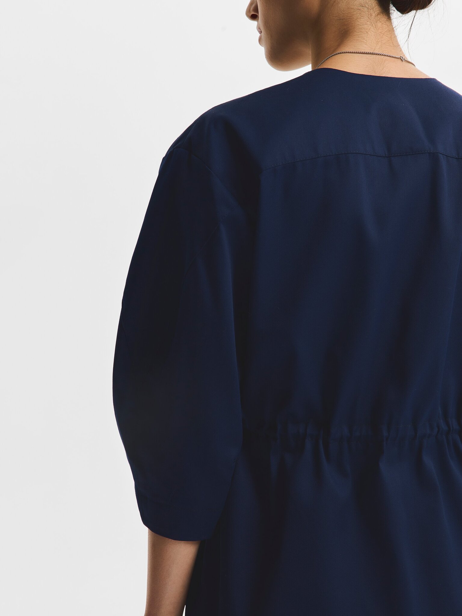 Жакет выполнен из плотного хлопка — ткань дышит, отлично держит форму и легко переносит частые стирки на высокой температуре. За счёт контрастной кулиски можно регулировать посадку по талии, подчёркивая силуэт. Длина чуть ниже бедра визуально вытягивает фигуру, а рукав ¾ открывает запястье — практично и элегантно одновременно. При этом сам рукав имеет актуальную скругленную форму и дополнен потайной молнией для расширения.